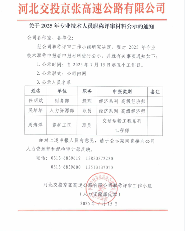 關于2025年專業(yè)技術(shù)人員職稱評審材料公示的通知